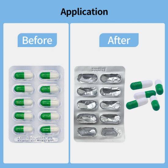 ١. إنتاج الأدوية: في خطوط إنتاج الأدوية، تُستخدم أجهزة DeBlister لمراقبة جودة الأدوية. إذا وُجد دواء معيبًا أو مُغلّفًا بشكل غير صحيح في عبوة نفطة، يُمكن استخدام جهاز DeBlister لإخراج الدواء من العبوة بسرعة ودقة، ثم إعادة استخدامه أو إتلافه.